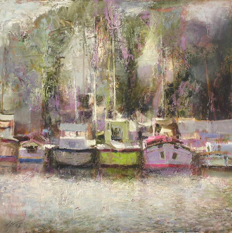 Мазки при штиле все горизонтальные, можно добавить вибрацию цветом, чтобы вода заиграла, больше стала водой. Как только в спокойной воде появляются не горизонтальные мазки, теряется ощущение глубины.