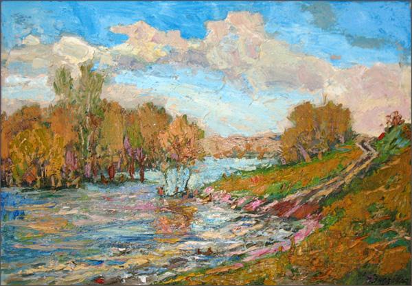 Если день солнечный, на воде должны быть блики. Тень на воде не должна быть похожа на тень на земле, вода - не ровная поверхность, она должна вибрировать цветом. Даже с большого расстояния этот эффект цветной ряби нужно поддерживать, едва заметно.