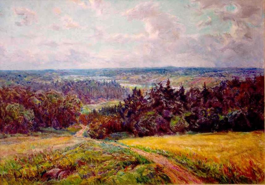 Кроме линейной (геометрической) перспективы, существует еще воздушная перспектива. Если выйти на открытое место и посмотреть вдаль, то увидишь, что предметы, удаленные от нас, как-то посветлели и приобрели голубоватый оттенок. А лес на горизонте - тот вовсе стал синим, так же как и далекие хребты гор. Произошло это оттого, что между нашим глазом и далеким предметом лежит толща воздуха, содержащая взвешенные частицы пыли и капли влаги. Она-то и смягчает цвет предметов, делает их менее контрастными, придает им голубоватый оттенок. Впервые это подметил и изобразил Леонардо да Винчи. С тех пор предметы на заднем плане изображают не так четко, как на переднем. Дайте небольшую дымку вдали.